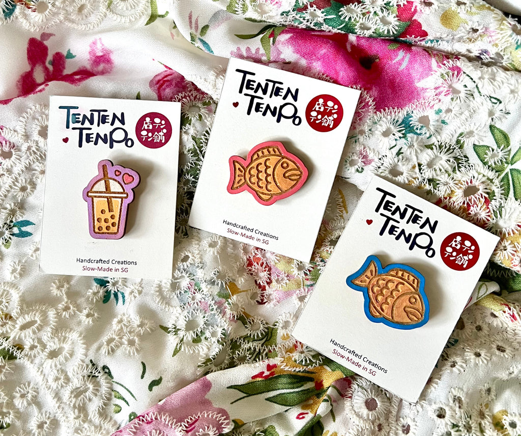Tasty snack inspired designs! A wooden pin accessory.